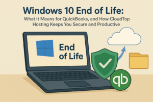 Windows 10 end of support is here. Microsoft’s policy is clear, and Intuit’s guidance underscores the stakes for QuickBooks users. Whether you upgrade to Windows 11 now or later, hosting QuickBooks with CloudTop Office protects your data today, without waiting on new hardware or accepting unnecessary risk.
